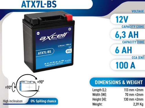 6.3Ah 100A Axcell AGM moto akumulators 113x70x130