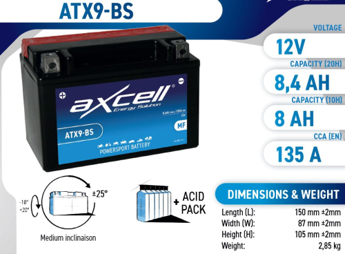 8.4Ah 135A Axcell AGM moto akumulators 150x87x105