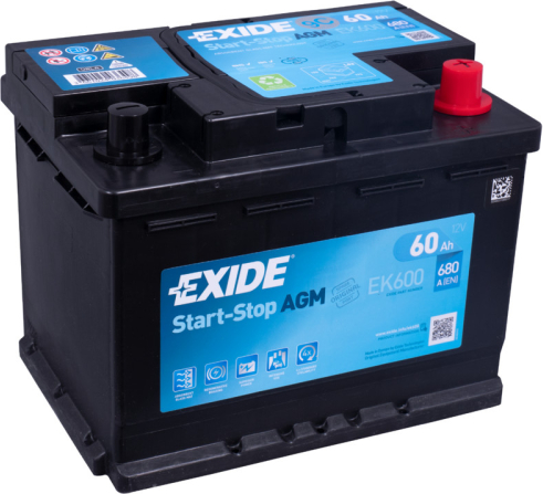EXIDE AGM EK600 12V 60Ah(c20) 680A(EN) 242x175x190 0/1 EAN3661024036498