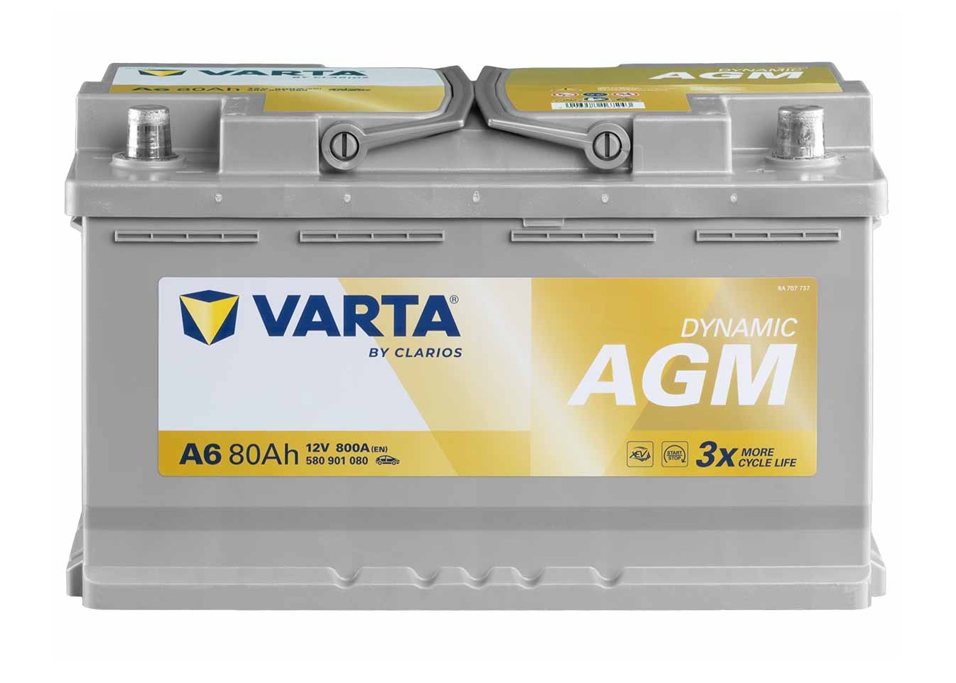 VARTA A6 80Ah 800A 12V Silver (EN) xEV AGM 315x175x190 -+ B13 Start-Stop Plus Akumulators