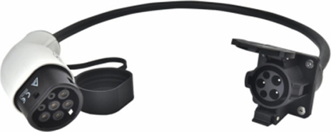 | Electric car charging cable adapter from Type 2 (Female) plug to Type 1 (Male) socket, with 0.3m cable. Specifications: Charging current: 32A (1-phase). Voltage: 240V AC. EV connector 1: IEC 62196, Type2 (European standard), Mennekes, 7-pin, female. EV connector 2: SAE J1772, Type1 (Japanese / US standard), Type Yazaki, 5-pin. Operating temperature -30°C to + 50°C. Safety class: IP44. Material: thermoplastic. Certificates: CE, TUV. Color: white. Warranty: 24 months |