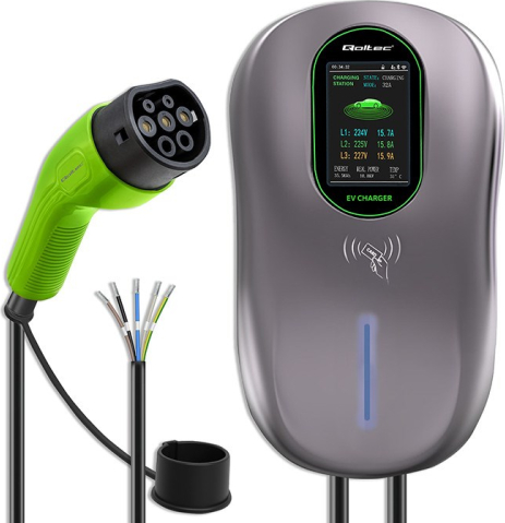 Qoltec 52430 EV Charging Station 2-in-1 Type2 | 22kW | Wi-fi| LCD | RFID | 3 phases | Wallbox | 5m