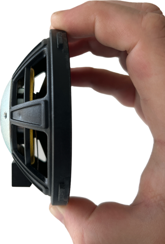 All HELIX COMPOSE i7 and i3 speaker baskets are made of a high-tech polymer composite, which has been additionally reinforced with glass spheres. The result: maximum stability with minimal self-resonance, while also eliminating flux modulation of the magnetic system and maximum resistance to thermal influences. Last but not least, this allows for much more compact basket dimensions and thus simplified installations in cramped installation conditions.