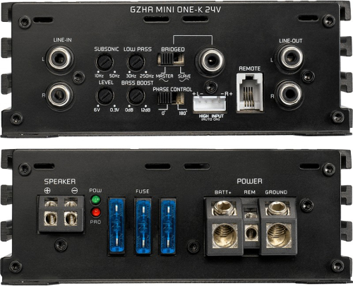 GZHA mini-amplifiers are representign latest D-class technology that is also used in OEM-amplifiers. Main difference to traditional D-class is much better sound quality throughout whole bandwith. It is impossible to say in a blind test that are you listening to good AB-class amp or GZHA mini-amplifier. - High-efficient class D amplifier to 24V systems |