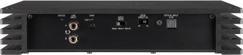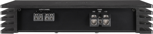 High performance Class D mono amplifier with up to 1,800 Watts RMS @ 1 Ohm – a perfect match for all 2 x 2 Ohms subwoofers connected in parallel