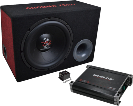 Vented enclosure with 30 cm / 12″ subwoofer and front bass vent, red logo stitch and side panels, bridgeable 2-channel amplifier Subwoofer kit with amplifier 12″ subwoofer with IMPP cone Vented enclosure with front aero-port 1.41 ft³ net volume Mono class AB amplifier 300 Watts max output power Variable active crossover Bass boost High-level input with auto-on function Optionally available with cable kit Model |