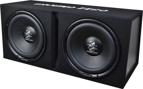 Passive vented enclosure including two 12″ IRIDIUM subwoofers with EFP front bass channel and angled rear wall 12″ vented subwoofer loaded enclosure Subwoofer GZIW 300 Front vented Wooden enclosure Push terminal Model |
