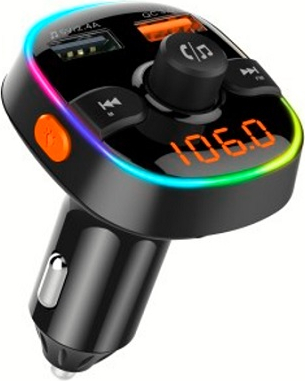 | FM transmitter with fast charging function. This in-car wireless FM transmitter is designed to transmit MP3/WMA audio files from a USB flash, MP3 player or smart device to the car radio using FM radio waves. Features: FM music transmission to the car radio. Colorful atmosphere lights, 7 colors will show by turns, then you can get a stunning and cheerful atmosphere, helps you see and use transmitter more easily at night, safer for driving. Dual USB charger. Two devices can be charged at the same time. Charging via USB: 5V/2.4A. Fast charging with USB Qualcomm 3.0. Hands-free functions: answer, call hold, reject, redial. Supports 2 mobile phone connections simultaneously. Car battery voltage detection. Automatic power off memory function. Echo cancellation and noise reduction (CVC) technology. LED display. Microphone. Supports voice navigation. Available sources for music: USB memory flash. Micro SD card (up to 32GB). U-disk storage capacity (up to 32GB). Bluetooth version: 5.0. Technical data: Rated operating voltage: 12-24V. Operating voltage: min 10V - max 26V. USB1 output (U-disk): 5 V / 2.4 A. USB2 output: Qualcomm® Quick Charge 3.0, 18W. Noise cancellation technology (DSP and CVC). Signal-to-noise ratio SNR: > 60 dB. FM frequency range: 87.5-108.0 MHz. Effective microphone range: 0.5-2 m. Bluetooth sound processing: DSP and A2PD support (Enhanced Audio Distribution Profile). Supports formats: MP3/WMA/WAV/FLAC/APE. Bluetooth transmission distance: 10m. Note: For better sound quality, please select a station frequency that is as far away as possible from the frequency of another station. Warranty: 24 months. ![]() ![]() |
