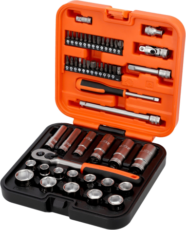 Bahco Standard and Deep sockets set 10-22mm + bits PH,PZ,HEX,TORX 53 pcs 3/8"