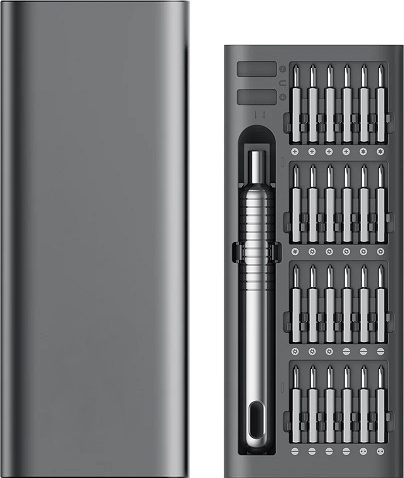 | 51in1 Magnetic screwdriver set Features: Professional precision screwdriver kit for electronics repair. Widely applicable to most household appliances, such as mobile phones, glasses, tablets, digital cameras, watches, etc. Screwdriver bits are made of chrome-vanadium steel, easy to use, durable. Magnetic screwdrivers will help you to collect the screws. Built-in magnet with magnetization and demagnetization function. Durable, secure-locking, slide-out magnetic case holds bits securely in place. Lightweight, compact design. Technical specifications: Number of bits: 48. Material: S2 chrome vanadium steel. Color: gray. Driver handle length: 106 mm. Length of bits: 28 mm. Case size: 168x66x16 mm. Bits sizes: Phillips (cross): PH000, PH00, PH0, PH1. Flat head screwdriver: SL1.0, SL1.5, SL2.0, SL2.5, SL3.0, SL3.5, SL4.0. Torx: T2, T3, T4. Security Torx: T5H, T6H, T7H, T8H, T9H, T10H, T15H, T20H. Hex screwdriver: H0.7, H0.9, H1.3, H1.5, H2.0, H2.5, H3.0, H3.5, H4.0. Y shapes: Y0.6, Y1, Y2.0, Y2.5. Five-pointed star shapes: P2(0.8), P5(1.2), P6(1.5). Triangle: 2.0, 2.3, 3.0. Square: SQ0, SQ1, SQ2. U-Type (Spanner): U2.6, U3.0. 2.5 (centre plate). SIM (needle). Warranty: 12 months. ![]() ![]() |