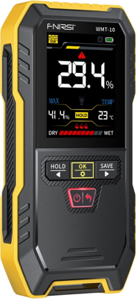 Versatile applicationsThe FNIRSI WMT-10 will prove useful for measuring the moisture content of wood, paper, plaster, cement, plaster, concrete or brick. It is an indispensable tool for professionals in the construction, renovation, carpentry and finishing trades - anywhere where accuracy of measurement and not disturbing the surface under test are crucial.