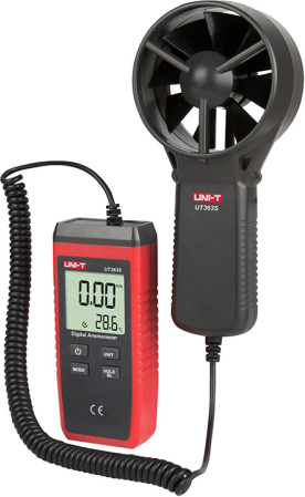 UNI-T UT363S anemometerUNI-T UT363S is an advanced digital anemometer with a separate sensor on a cable, which is distinguished by high precision measurement and convenient operation. Thanks to its refined design, it is possible to measure wind speed and temperature even in hard-to-reach places - such as ventilation ducts, machine housings or fan outlets. The device was designed for industrial and professional applications,among others. in power generation, mining, metallurgy, chemical industry, ventilation, sports and production of cooling equipment.