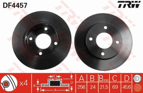 Augstums [mm] - 45,6; Bremžu diska biezums [mm] - 24; Centrējošais diametrs [mm] - 69; Diametrs [mm] - 256; lakots; melns; Minimālais biezums [mm] - 21,5; pārdodas tikai pa 2 gab; Skrūvju loks-Ø [mm] - 114; Urbumu skaits - 4; ventilējams; Vītnes izmērs - 12,6 Replaced by DF4457BP |