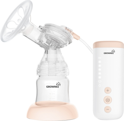 Grownsy breast pump (pink)The Grownsy electric breast pump has been designed with the daily feeding routine in mind – both at home and away. It combines two modes inspired by a baby's natural sucking, five-stage adjustment with memory settings, and an anti-backflow system that protects milk from flowing back. Its slim design and built-in USB-rechargeable battery allow you to express milk without constant access to a power outlet. This device gives you control over the intensity, time, and place of expression – without compromising on hygiene.