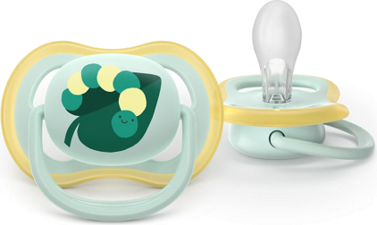 Mazuļa āda var elpot, pateicoties īpaši lielajām gaisa atverēm Vairogā ir atveres, pa kurām pie mazuļa ādas piekļūst gaiss, tāpēc tā saglabājas sausāka un mazulim ir ērtāk. Dabiska mutes dobuma veidošanās ar ortodontisku knupīti Mūsu ortodontiskie knupīši ir ražoti no mīksta silikona, kas pielāgojas mutes muskuļu dabiskajām kustībām un tādējādi mazina risku, ka varētu izveidoties nepareizs sakodiens. Knupīša šaurā konstrukcija rada mazāku spiedienu starp mēli un aukslējām. Philips Avent ultra knupjiem ir neatkarīgās organizācijas Oral Health Foundation sertifikāts. Tie ir ražoti no 100% pārtikas klases silikona, ir izturīgāki un kalpo ilgāk nekā gumijas (lateksa) knupīši, turklāt tajos nav BPA, BPS, ftalātu, PVH vai policiklisko aromātisko ogļūdeņražu. Mazuļiem patīk — 98% zīžamās daļas (knupīša) pieņēmība Mūsu silikona knupīšu tekstūra ir veidota tā, ka līdzinās mātes krūtij. Aptaujājām vecākus, no kuriem 98% atzina, ka viņu mazulis pieņem Philips Avent ultra knupi. Saudzējot planētu ar 80% augu izcelsmes materiālu Ilgtspējīgāka izvēle ļauj ne tikai teicami rūpēties par mazuli, bet arī saudzēt planētu. Visi Philips Avent ultra klāsta knupji un sterilizēšanas futrāļi ir ražoti no 80% augu izcelsmes materiālu. Praktisks sterilizēšanas un pārnēsāšanas futrālis Pārnēsāšanas futrālis vienlaikus ir arī sterilizēšanas futrālis, tāpēc knupjus var vienmēr ātri sagatavot lietošanai. Atliek tikai ieliet ūdeni un 3 minūtes sterilizēt mikroviļņu krāsnī, kas ir ērti, turklāt rada līdz 50% mazāk CO2 emisiju.