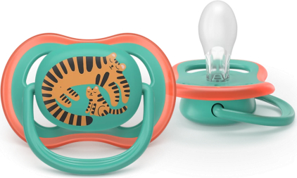 Mazuļa āda var elpot, pateicoties īpaši lielajām gaisa atverēm Vairogā ir atveres, pa kurām pie mazuļa ādas piekļūst gaiss, tāpēc tā saglabājas sausāka un mazulim ir ērtāk. Dabiska mutes dobuma veidošanās ar ortodontisku knupīti Mūsu ortodontiskie knupīši ir ražoti no mīksta silikona, kas pielāgojas mutes muskuļu dabiskajām kustībām un tādējādi mazina risku, ka varētu izveidoties nepareizs sakodiens. Knupīša šaurā konstrukcija rada mazāku spiedienu starp mēli un aukslējām. Philips Avent ultra knupjiem ir neatkarīgās organizācijas Oral Health Foundation sertifikāts. Tie ir ražoti no 100% pārtikas klases silikona, ir izturīgāki un kalpo ilgāk nekā gumijas (lateksa) knupīši, turklāt tajos nav BPA, BPS, ftalātu, PVH vai policiklisko aromātisko ogļūdeņražu. Mazuļiem patīk — 98% zīžamās daļas (knupīša) pieņēmība Mūsu silikona knupīšu tekstūra ir veidota tā, ka līdzinās mātes krūtij. Aptaujājām vecākus, no kuriem 98% atzina, ka viņu mazulis pieņem Philips Avent ultra knupi. Saudzējot planētu ar 80% augu izcelsmes materiālu Ilgtspējīgāka izvēle ļauj ne tikai teicami rūpēties par mazuli, bet arī saudzēt planētu. Visi Philips Avent ultra klāsta knupji un sterilizēšanas futrāļi ir ražoti no 80% augu izcelsmes materiālu. Praktisks sterilizēšanas un pārnēsāšanas futrālis Pārnēsāšanas futrālis vienlaikus ir arī sterilizēšanas futrālis, tāpēc knupjus var vienmēr ātri sagatavot lietošanai. Atliek tikai ieliet ūdeni un 3 minūtes sterilizēt mikroviļņu krāsnī, kas ir ērti, turklāt rada līdz 50% mazāk CO2 emisiju.