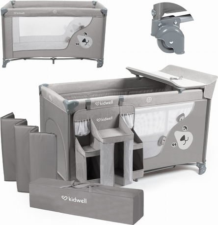 - pārtinamais galds ar drošības jostu un netīrumus atgrūdošu materiālu, uz kura var parūpēties par bērna higiēnu; - soma, pateicoties kurai gultiņu var paņemt līdzi jebkur;
