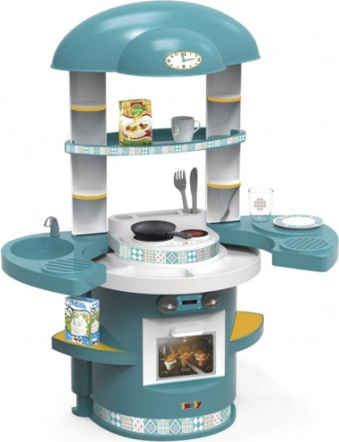Mana pirmā virtuve no smoby priecēs mazos pavārus mājā, no 18 mēnešiem; Tā izvelkamie sānu atloki atklāj daudz nodalījumu visu piederumu glabāšanai; ar izlietni, ēdamistabas zonu, cepeškrāsni un dažādiem plauktiem; Šī virtuve palīdz mazajiem attīstīt iztēli; Iekļauts šķīvis, glāze, krūze, nazis, dakšiņa, karote un 2 kastes ar ēdienu; Tā samontētie izmēri ir 70x30x80 cm. |