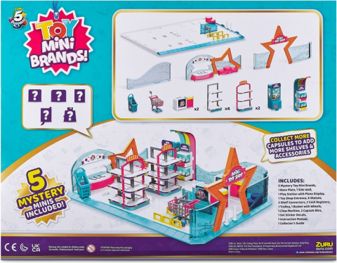 Izveidojiet savu „Mini Brands“ rotaļu veikalu un demonstrējiet visas savas iecienītākās „Mini Brands“ rotaļlietas! Komplektā ietilpst rotaļu veikala konstrukcijas daļas, kases aparāts un iepirkumu ratiņi, kā arī 3 ekskluzīvas miniatūras rotaļlietas, kuras neatradīsiet nekur citur.