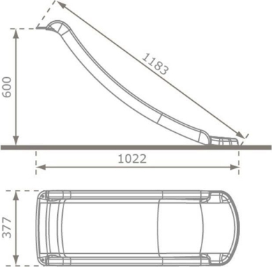 Šis 118 cm garais slidkalniņš ir īpaši pielāgots bērnu spēļu namiņiem “Sienāzītis”, “Asniņš”, "Kārīte".