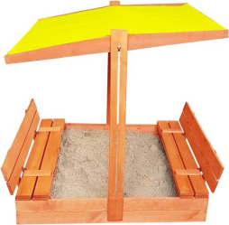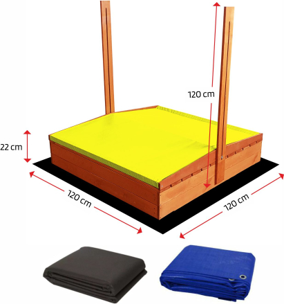 | Praktiska un funkcionāla smilšu kaste ir aprīkota ar vāku, kas ne tikai aizsargā smiltis no lietus, vēja un dzīvnieku radītā piesārņojuma, bet arī pārtop par ērtiem soliem, kas atrodas sānos. Komplektā ietilpst arī jumts, kas nodrošinās lielisku aizsardzību ne tikai no karstas saules, bet arī no lietus. Jumta augstums regulējams.