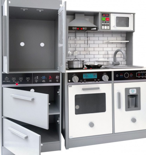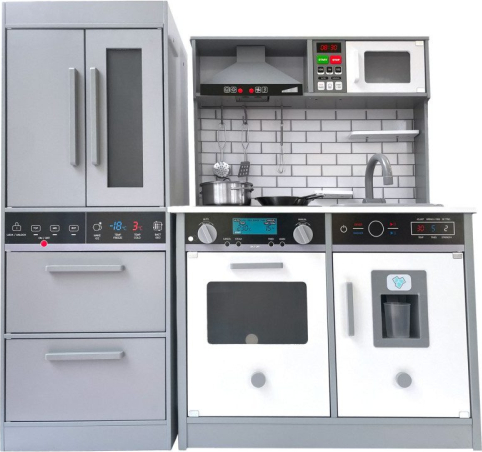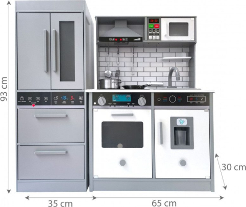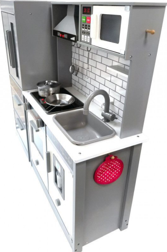 Kas var būt jaukāks, kā tikt pašam pie savas virtuves, kurā var kļūt par īstu šefpavāru. Modernas, funkcionālas, reālistiska dizaina ierīces: izlietne, plīts, cepeškrāsns, mikroviļņu krāsns. Cepeškrāsnī cepas garšīgs ābolu pīrāgs, katliņā vārās zupa un pannā ceptas olas. Koka virtuve ir lielisks līdzeklis, kas palīdz bērniem attīstīt patstāvību, radošumu un iztēli. Šī ļoti funkcionālā un reālistiskā virtuve iepriecinās daudzus mazos gardēžus. Plīts ir aprīkota ar LED gaismas paneli, kas rada reālas ēdiena gatavošanas skaņas. Plīts tvaika nosūcējam ir ventilatora darbības troksnis. Mikroviļņu krāsnij ir palaišanas un apturēšanas pogas.