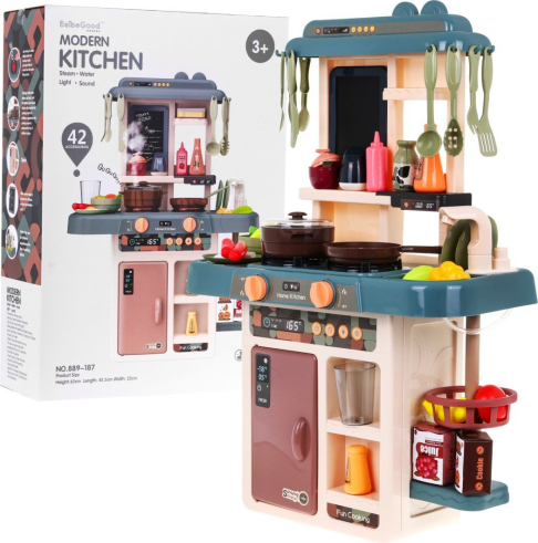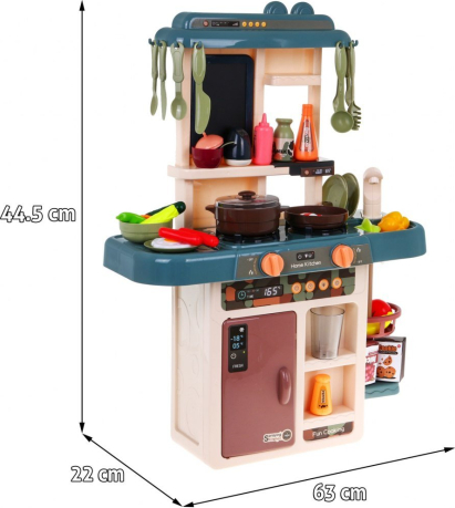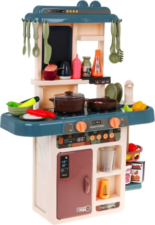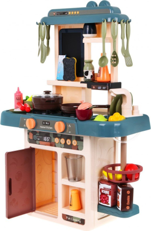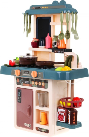 Virtuve ir rotaļlieta, kas patīk gan meitenēm, gan zēniem. Mūsu piedāvātais komplekts ir paredzēts bērniem no 3 gadu vecuma. Tam ir skaņas un gaismas efekti. Tā ir maza, kas ir svarīgi mūsdienās, kad bērniem ir pilnas istabas ar rotaļlietām. Stabila struktūra, estētiska apdare, pasteļkrāsas, bagātīgs aprīkojums. Darbojas ar 3 x AA baterijām - nav iekļautas komplektā. Virtuvē ir krāns ar izlietni, no kuras tek ūdens, izgaismoti degļi ar gatavošanas un cepšanas skaņām, tvaika funkcija uz viena no degļiem, dēlis piezīmju veikšanai, atvērts ledusskapis, kā arī 42 virtuves piederumi, piemēram: galda piederumi. , podi, šķīvji, augļi, dārzeņi utt. |