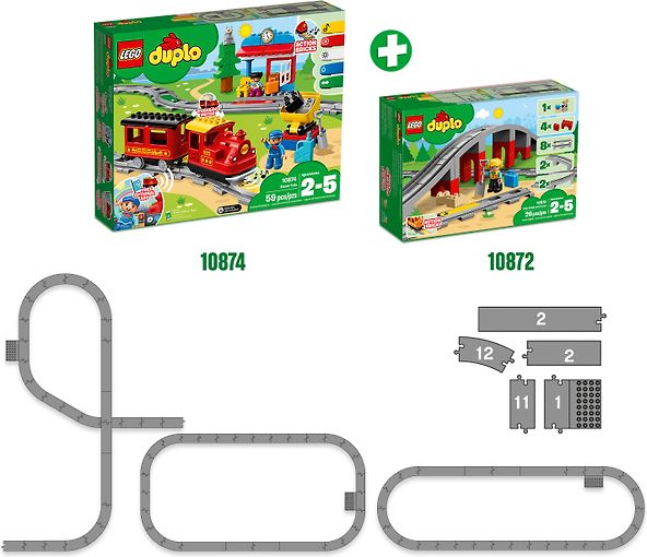 - Šajā komplektā iekļautās sliedes ir savietojamas ar bērna esošo LEGO® DUPLO® vilcienu kolekciju.