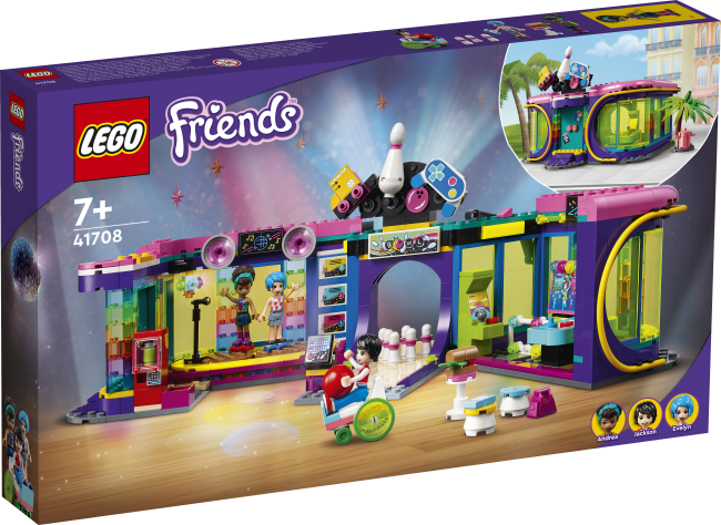 - Daudz funkciju, ko atklāt. Iekļautas 3 jautras aktivitātes: skrituļslidu diskotēka, boulinga celiņš un arkādes spēļu zona. Iekļauti arī 3 LEGO® Friends tēli aizraujošām lomu spēlēm