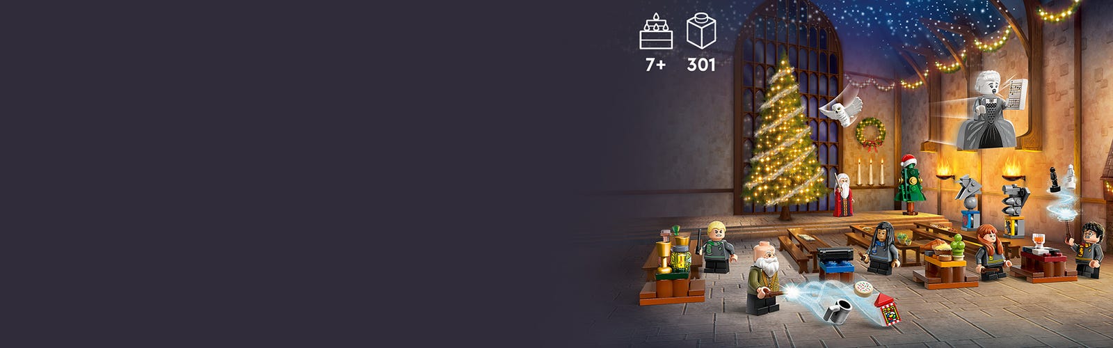 Leģendārie Cūkkārpas™ priekšmeti, Ziemassvētku rotājumi un LEGO® Harry Potter™ minifigūras, kas priecēs mazos fanus svētku laikā.
