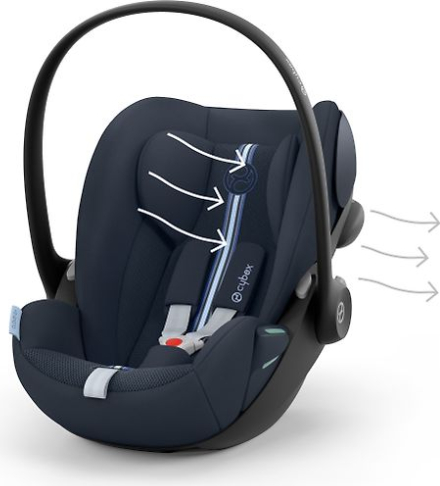Vislabāk aprīkotais CYBEX Cloud G i-Size automašīnas sēdeklis ir piemērots automašīnām, ratiņiem un pat lidmašīnu salona sēdekļiem. Lieliska sēdekļa ergonomika un līdz pat 14 galvas balstu regulēšanas līmeņi palīdz jūsu mazajam atrast pareizo ceļojuma pozīciju. Papildus galvas balstam sēdekli var noliekt saldā atpūtas pozīcijā, lai jau mājupceļā varētu sākt snaust. Pateicoties lielajai pārvietošanās telpai, sēdeklis ir piemērots lietošanai līdz 2 gadu vecumam pēc auguma, ar svara ierobežojumu 13 kg. Paplašināmais XXL sauļošanās vāciņš nodrošina aizsardzību no saules automašīnas iekšpusē un ārpusē. Drošība ir ņemta vērā arī sānu triecienā, jo korpusā integrētā Linear Side-impact Protection System Plus aizsargā līdz pat 15% efektīvāk no trieciena spēka. Sēdekļa piestiprināšana uz aizmuguri vērstai automašīnai tiek veikta ar pašas automašīnas 3 punktu jostu vai alternatīvi ar atsevišķu par 180 grādiem rotējošu ISOFIX statīvu. Ātrās bloķēšanas pamatne paātrina uzstādīšanu un izņemšanu, kā arī ļauj pārvietot guļošu bērnu no automašīnas iekštelpās, nemodinot mazos. Ar vienu roku darbināmais ISOFIX ir arī ļoti drošs, jo ievērojami samazina iespējamu nepareizu uzstādīšanu. CYBEX Cloud G i-Size autokrēsliņu var piestiprināt arī Travel System gataviem ratiem (piestiprināšanas adapteri nopērkami atsevišķi).
