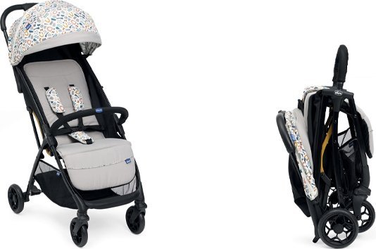 Ratiņu salikšana ir neticami vienkārša. Pietiek ar vienu rokas kustību, lai Chicco saruktu līdz īpaši kompaktam izmēram. Pēc salocīšanas rati stāv atsevišķi.