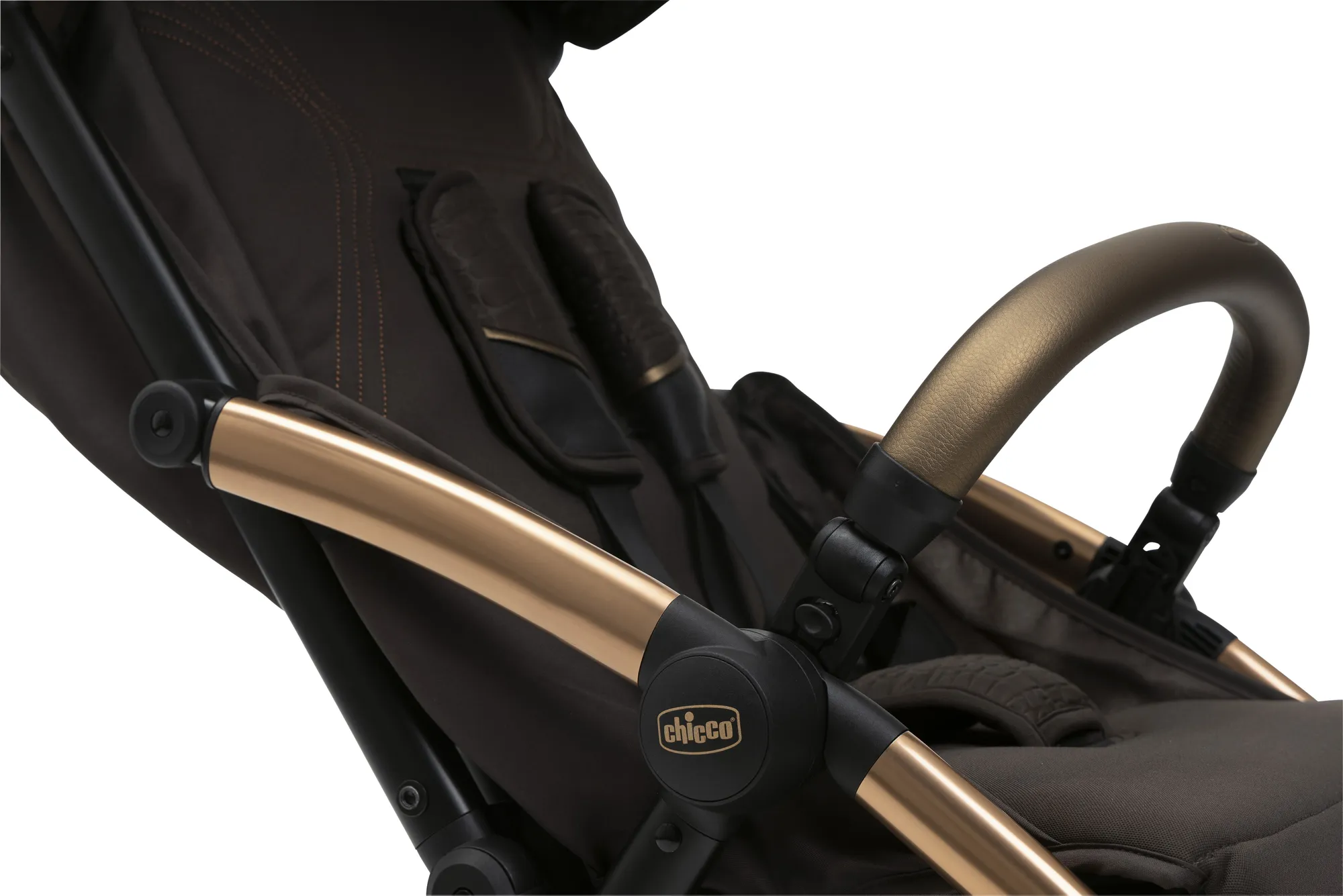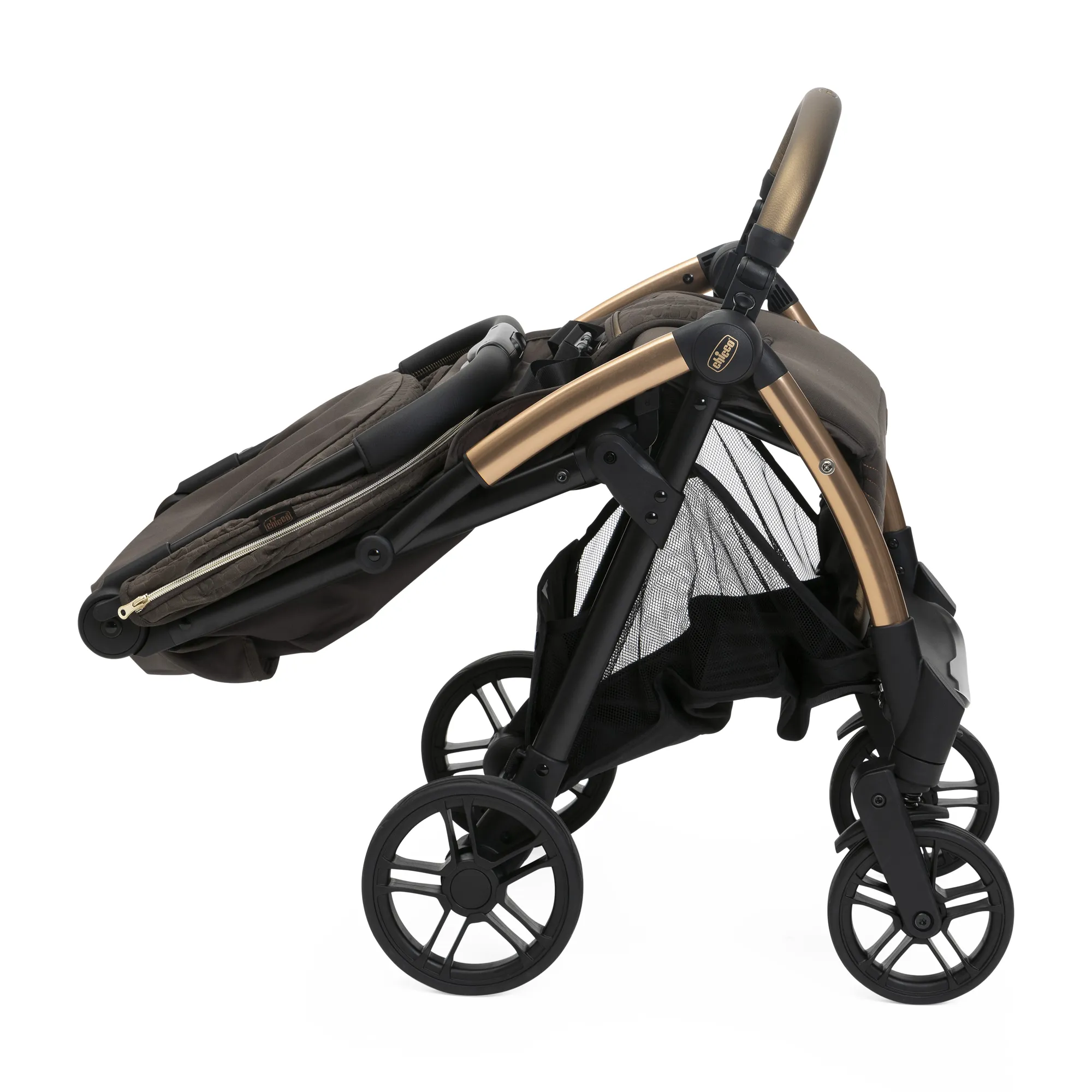 Goody XPlus ir izturīgs produkts ar neaizmirstamu izskatu. Audums ir izgatavots no 60% 100% pārstrādāta poliestera, mīksta pieskāriena sarža un adījuma ar 3D rakstiem un zelta apdari, nodrošinot mazuļa komforta un vecāku stila kombināciju.