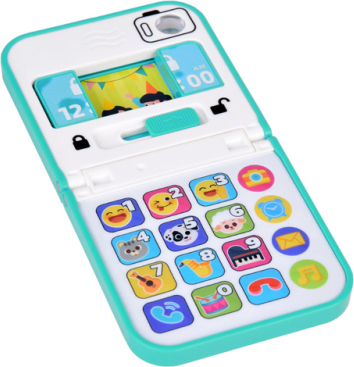 Ciparu tastatūra: 1. režīms - bērns dzirdēs ciparus no 0 līdz 9 (angļu valodā), 2. režīms - dažādas skaņas: bērnu smiekli, uz redzēšanos, ņaudēšana, riešana, bļaušana, ģitāra, saksofons, klavieres, bungas, zaļā klausule - zvanīšana, zvana signāls, sarkana klausule - aizņemts signāls, kamera augšējā labajā stūrī (imitācija), divpakāpju skaļuma regulēšana, kad Ja netiek lietots ilgu laiku, tas atgādina par sevi ar īsu melodiju.
