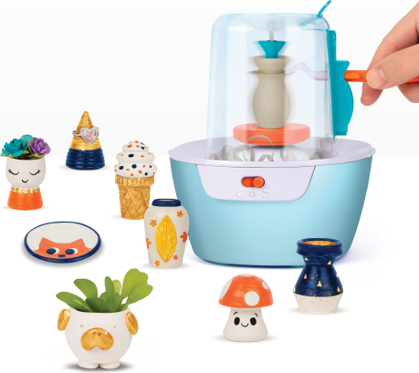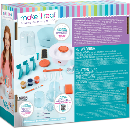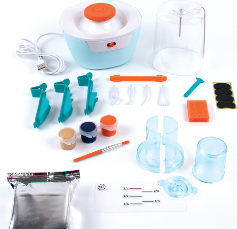 | Miniatūras keramika ir nākamā lielā, mazā tendence! Tīņi var izgatavot savus mini keramikas šedevrus ar inovatīvo Mini keramikas studiju. Nav nepieciešamas dārgas nodarbības un neērtības ar tīrīšanu... keramika vēl nekad nav bijusi tik pieejama! Nekādas nekārtības, nekādas cepšanas, nekāda trokšņa, un visi materiāli glabājas studijā. Veidojot 10 projektus no iesācēja līdz meistaram, veidojiet 10 projektus, izmantojot dabīgu, gaisā žāvētu mālu. Iegūstiet lieliskus rezultātus jau no paša sākuma ar pilnībā vadītu atbalstu vai noņemiet kupolu un veidnes, lai radītu brīvā stila darbus. Ietaupiet laiku un viegli centrējiet mālu, izmantojot nekad nebijušu centrēšanas rīku. USB barošanas vads iekļauts komplektā. Tīņi un vecāki būs sajūsmā, sajūtot keramikas rata ātrumu un vieglu māla kustību, kad veidosiet skulptūras... tas ir ļoti patīkami! | ||||||||||||||||||||