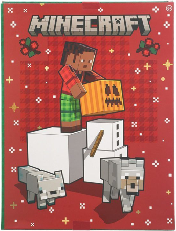 Savāc visas 27 kancelejas dāvanas Iekļauta piezīmju grāmatiņa, līmlapiņas, piezīmju blociņš, pildspalvas, zīmuļi, dzēšgumijas, saspraudes, lineāls, zīmogi, vaši lentes, sīkrīku uzlīmes, magnētiskās grāmatzīmes, magnēts un folijas uzlīmes Galvenais svētku našķis Ziemassvētku atpakaļskaitīšanai Oficiāli licencēts Minecraft produkts