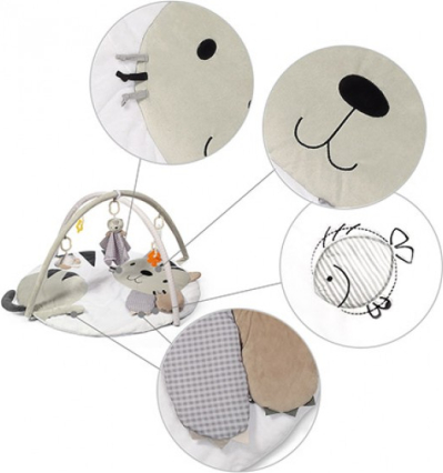Spēlējot uz attīstības paklājiņa, jūsu bērns attīstīs taustes sajūtu. Bērns atradīs interesantus elementus ar dažādām faktūrām un formām. Starp tiem ir gludas ķepas, raupji nadziņi, mīkstas ausis un aste. Paklājs ir vieta, kur izklaidēties un atpūsties.