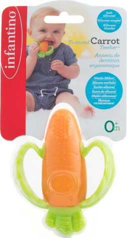 Infantino ir produktu līnija zīdaiņiem, kas ir pilna jautra un pārdomāta dizaina, kas gatavs vecāku ikdienas piedzīvojumiem, audzinot un attīstot savus bērnus. Infantino produkti zīdaiņiem palīdz jums un jūsu mazuļiem augt kopā un parāda, ka mācīšanās un izziņas procesam nav jābūt sarežģītam vai garlaicīgam. Šis mīkstais silikona burkānu kociņš ir lieliski piemērots jutīgu smaganu nomierināšanai un zobu šķelšanās atvieglošanai. Tam ir viegli satverami rokturi un interesanta tekstūra uz burkāna lapām un burkāna galiem. Nesatur BPA un var mazgāt trauku mazgājamā mašīnā. | ||||||||||||||||||||