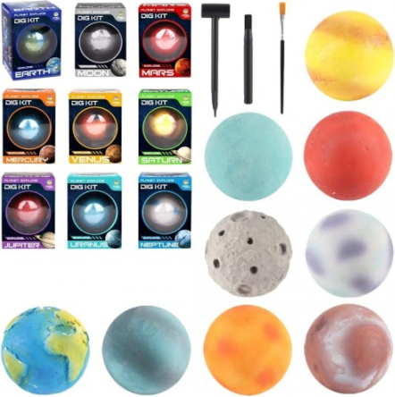 cena par 1 gab. Planet Explore Dig komplekts — atklāj savu Saules sistēmu! Iepazīstinām ar neparasto Planet Explore Dig komplektu, kas aizvedīs jūsu bērnu aizraujošā kosmosa un arheoloģijas ceļojumā! Katrā iepakojumā ir mini klucītis, kurā paslēpta planēta vai mēness. Šī ir ideāla rotaļlieta jaunajiem astronomiem un pētniekiem, nodrošinot stundām ilgas radošas spēles un mācīšanās. Galvenās produkta iezīmes: Planet Dig komplekts: Katrā komplektā ir iekļauts ģipša (vai līdzīga materiāla) klucītis ar tajā iestrādātu planētas vai mēness figūru. Izrakumu process ir gluži kā īstos izrakumos! Pilnīga Saules sistēma: Komplekti ir pieejami ar dažādiem debess ķermeņiem, piemēram, Zemi, Mēnesi, Marsu, Merkuru, Veneru, Saturnu, Jupiteru, Urānu un Neptūnu. Tas ļauj jums savākt visu kolekciju un izveidot savu Saules sistēmas modeli. Izrakumu instrumenti: Katrā komplektā ir iekļauti plastmasas instrumenti — āmurs, kalts/skrāpis un birste. Tie atvieglo precīzu planētas izņemšanu no klucīša. Reālistiskas planētu figūriņas: Izraktās planētu figūriņas ir nokrāsotas, lai atdarinātu to īstās krāsas un virsmas, padarot tās ne tikai par rotaļlietu, bet arī par izglītojošu modeli. Attīsta pacietību un precizitāti: Izrakumu process prasa koncentrēšanos, pacietību un precīzas kustības, kas uzlabo roku veiklību un roku-acu koordināciju. Atbalsta STEM izglītību: Komplekts iepazīstina bērnus ar astronomiju un ģeoloģiju aizraujošā veidā, stimulējot viņu zinātnisko zinātkāri un vēlmi izpētīt pasauli. Lieliski piemērots kā dāvana: Komplekts ir skaisti iepakots kartona kastītē ar grafiku, kas attēlo planētu, padarot to par gatavu un pievilcīgu dāvanu jebkuram jaunam pētniekam. Ieteicamais vecums: 6+ (kā norādīts uz iepakojuma). Iepakojuma izmērs: 13x10x10 cm. Dodiet savam bērnam iespēju piedzīvot aizraujošus atklājumus un iegūt savu Saules sistēmas planētu kolekciju ar Planet Explore Dig Kit! BRĪDINĀJUMI! Nav piemērots bērniem, kas jaunāki par 36 mēn! Komplektā sīkas detaļas! Savainošanās risks! Pirms rotaļlietu dodiet bērniem izņemiet to no iepakojuma. Ja uz tā ir svarīga informācija noglabājiet to bērniem nepieejamā vietā lai izvairītos no savainošanās riska (piem.ar skavām) vai nosmakšanas risku ar iepakojuma maisiņu. Ražots Ķīnā. Importētājs TRIFOX Sp. z o.o. ul.Konwaliowa 21 43-300 Bielsko-Biała Polija, e-mail: biuro@trifox.pl