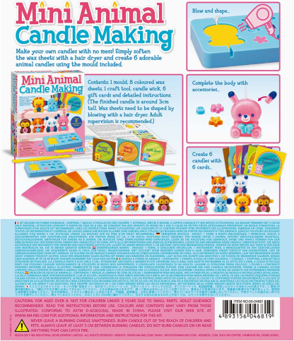 | Viegli veidojams sveču komplekts! Ar matu žāvējamo fēnu sasildiet vaska strēmeles līdz tās kļūst mīkstas un, izmantojot veidnes, izveidojiet 6 brīnišķīgas dzīvnieku sveces. |
