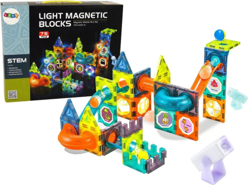 Leantoys Świecąca Zjeżdżalnia Dla Kulek Klocki Magnetyczne 75 Elementów