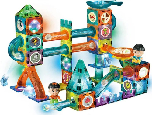 Leantoys Świecąca Zjeżdżalnia Dla Kulek Klocki Magnetyczne W Pudełku 150 Elementów LEAN Toys