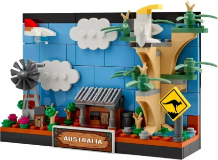 Atdzīviniet Austrālijas ārzonas unikālos skatus ar šo iespaidīgo 3D veidojamo Austrālijas pastkarti (40651). Šajā lieliskajā dāvanā ir attēloti daži no pazīstamākajiem ārzonas apskates objektiem, tostarp šķūnis, vējdzirnavas, eikalipta koks, tuksneša ziedi un kakadu. LEGO fani var pievienot arī dekoratīvu plāksnīti ar uzrakstu “Austrālija” un ķenguru ceļa zīmi. |