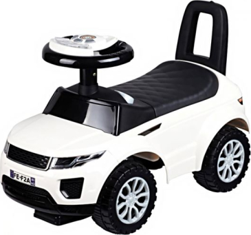 Mašinītei ir moderns dizains, un tā ir izgatavota no augstas kvalitātes plastmasas. Zem sēdekļa ir vieta rotaļlietām un citiem maziem priekšmetiem. Pogas uz stūres aktivizē dažādas melodijas.