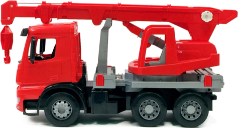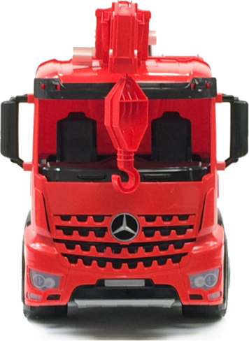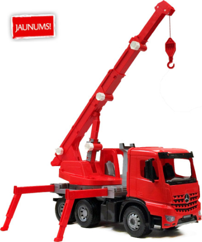 Super izturīga mašīna no Čehijas plastmasas, iztur līdz 100 kg Super funkcionāls celtnis Mercedes, ar 6 riteņiem . Strēles garums līdz 115 cm. Ir arī četri sānu stabilizatoru kājas, kas novērš celtņa apvērsumu. Celtņa strēles var rotēt uz 270 °. Vinčs un kabelis arī strāda. 70x39x28 cm Bērniem