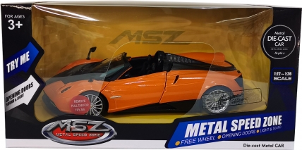 MSZ piedāvā plašu augstas kvalitātes miniatūro licencēto automašīnu modeļu klāstu. Zīmolam ir cieša sadarbība ar vairāk nekā 30 pasaulē slavenām automašīnu licencēm, tostarp Lamborghini, Bentley, Audi, Porsche, Land Rover, un tam ir plašs sortiments dažādos mērogos. Pašreizējais produkts ir Pagani Huayra Roadster modelis, faktisko izmēru 1:24. Kustīgas riepas, gaismas un skaņas funkcijas, atvērtas durvis, motora pārsegs un bagāžnieks. Pieejama krāsa: oranža. | ||||||||||||||||||||