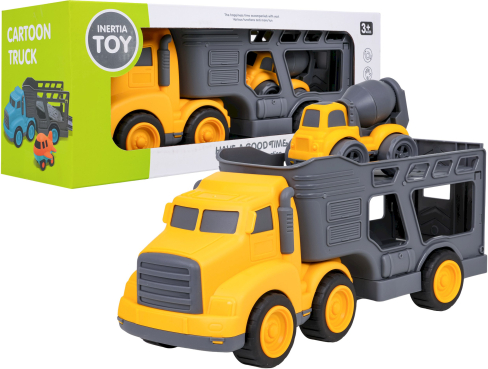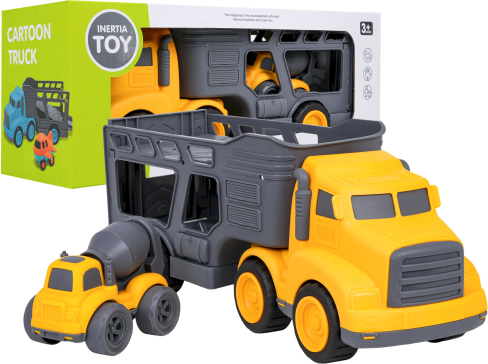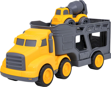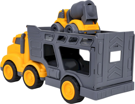 RoGer Liels Spēļu Auto Komplekts + Betona Maisītājs ir rotaļlietu komplekts bērniem no 3 gadiem, kurā ietilpst tramvajs‑platforma ar atvienojamu piekabi un celtniecības betona maisītājs, izgatavoti no izturīgas un krāsainas plastmasas; platformai ir atverama aizmugures klape un tai var atvienot piekabi, bet betona maisītājam ir vērsts maisīšanās cilindrs, kas rotē, padarot spēli dinamisku un attīstošu. |
