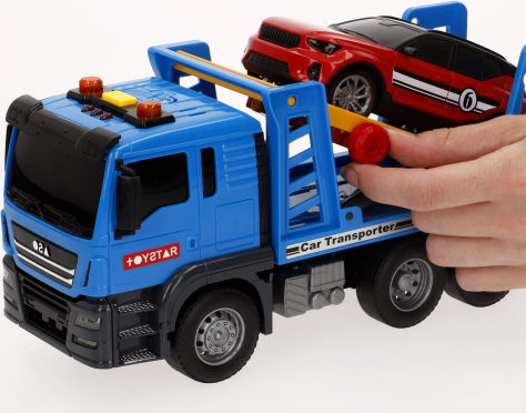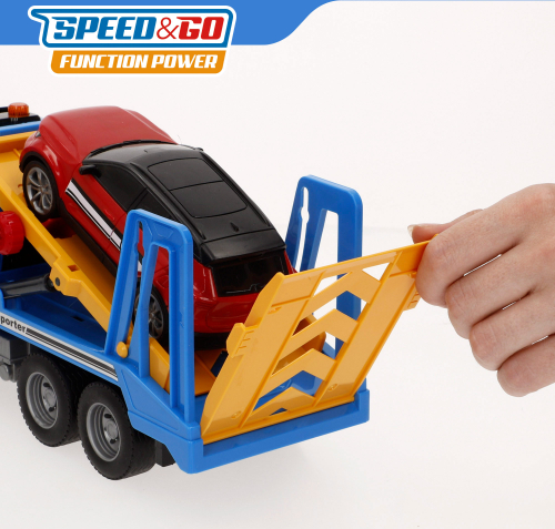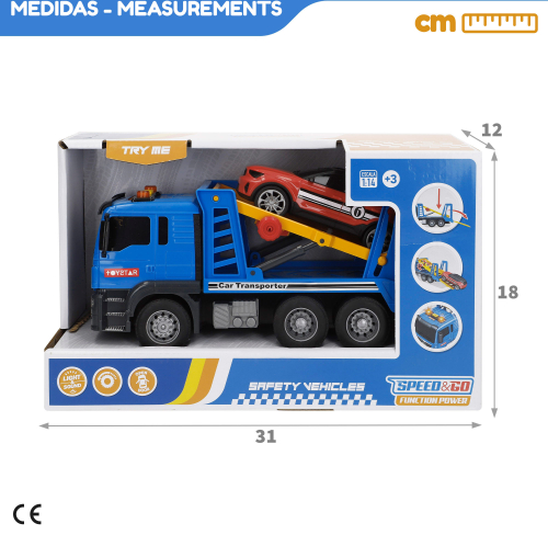Šis fantastiskais Speed & Go policijas transportlīdzekļa pārvadātājs ir ideāli piemērots mazajiem autotransporta entuziastiem. Ar mērogu 1:12 un izmēru 55x12x17 cm, to ir viegli lietot un tas ir lieliski piemērots spēlēšanai jebkur. Tajā ir iekļauta rotaļu automašīna un helikopters, un tas izstaro reālistiskas gaismas un skaņas, kas tiek aktivizētas ar vienu pogas pieskārienu, piedāvājot autentisku pārvietošanās pieredzi. Turklāt tā berzes sistēma ļauj tam pārvietoties bez papildu piepūles. Lieliska rotaļlieta, lai veicinātu iztēli un motoriskās prasmes, pārvadājot transportlīdzekļus! -Vecums un vērtības: ieteicams no 3 gadu vecuma. Veicina motoriskās prasmes, attīsta iztēli un stimulē maņas— rotaļu transportlīdzekļu pārvadāšanas kravas automašīna: ar reālistisku dizainu un detaļām, tajā iekļauta automašīna un policijas helikopters, kas ir gatavi transportēšanai uz jebkuru ārkārtas misiju. Izmēri 55x12x17 cm (mērogs 1:12), viegli lietojami mazām rociņām. - Reālistiskas gaismas un skaņas: kravas automašīna un helikopters imitē kustīgu transportlīdzekļu skaņas, un gaismas tiek aktivizētas, lai spēle būtu daudz reālistiskāka. Gan kravas automašīnu, gan helikopteru darbina 3 AG13/LR44 baterijas (iekļautas komplektā). - Berzes piedziņa: pārvietošanai baterijas nav nepieciešamas, vienkārši pabīdiet to atpakaļ un atlaidiet, lai vērotu, kā tas traucas uz priekšu. - Iekraušanas un izkraušanas mehānisms: kravas automašīnas manuālā rampa atvieglo automašīnas pacelšanu un nolaišanu, un salokāmās aizmugurējās durvis atveras un aizveras, lai droši pārvadātu transportlīdzekļus. |