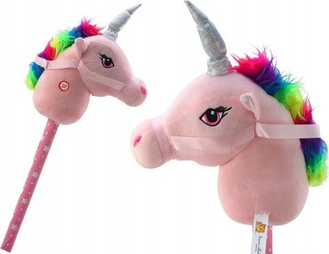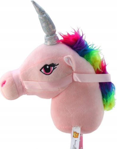 LeanToys Pluszowa Głowa Jednorożca Na Kiju Hobby Horse Jednorożec Różowy Dźwięki