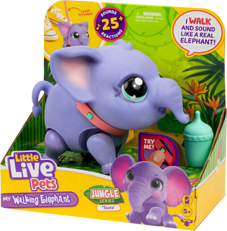 | Piedāvājam jauko Little Live Pets Sweet Safari staigājošo zilonīti – Eliju! Jūsu uzticīgais lolojumdzīvnieks – zilonītis Elija ar savām dzīvīgajām kustībām un skaņām ienesīs jūsu mājās savvaļas brīnumu. Ar vairāk nekā 25 apburošām skaņām un reakcijām Elija izceļ savu personību un šarmu. Mijiedarbojieties ar Eliju, pabarojot viņu un spēlējoties kopā, pēc tam dodieties ar viņu aizraujošos piedzīvojumos! Elijai ir īpaši maiga, gluda āda, un viņas snuķis graciozi kustas, kad viņa staigā apkārt. Pabarojiet Eliju ar piena pudelīti un klausies, kā viņa čāpstina, varbūt pat dzirdēsiet atraudziņu! Vienkārši pieskaroties Elijas aizmugurējai daļai, vērojiet, kā viņa priecīgi staigā apkārt, kustinot asti jaukās dziesmiņas ritmā. Lai ātri ielūkotos sagaidāmajā jautrībā, vienkārši piespiediet pogu uz viņas apkakles un vērojiet, kā Elijas snuķis sajūsmā šūpojas. Sagatavojieties nebeidzamām jautrības un draudzības stundām ar Little Live Pets staigājošo zilonīti — Eliju, kas tā vien gaida, kad varēs kļūt par jūsu jauno labāko draugu! | ||||||||||||||||||||